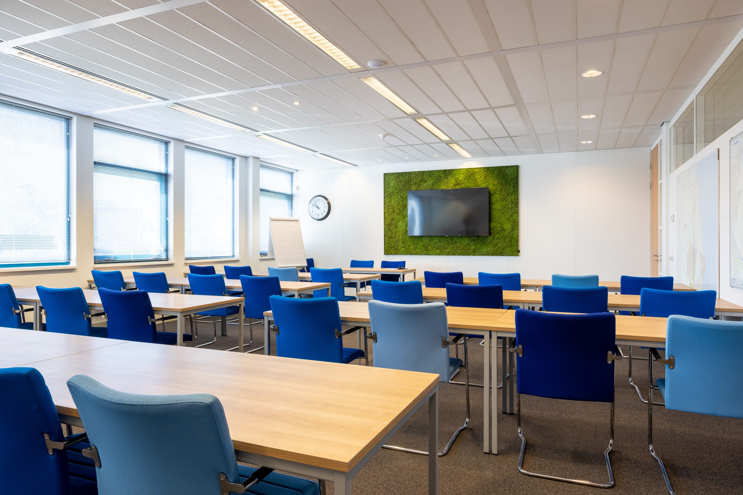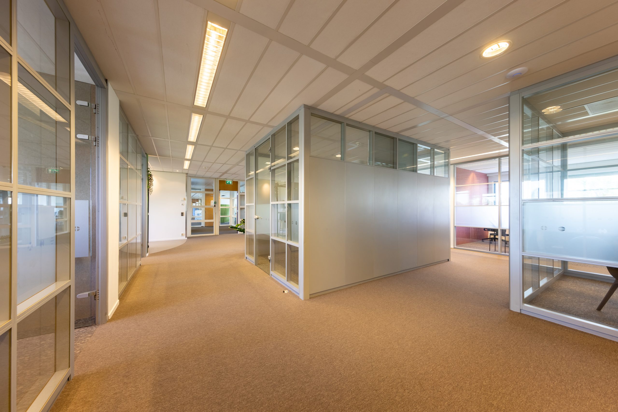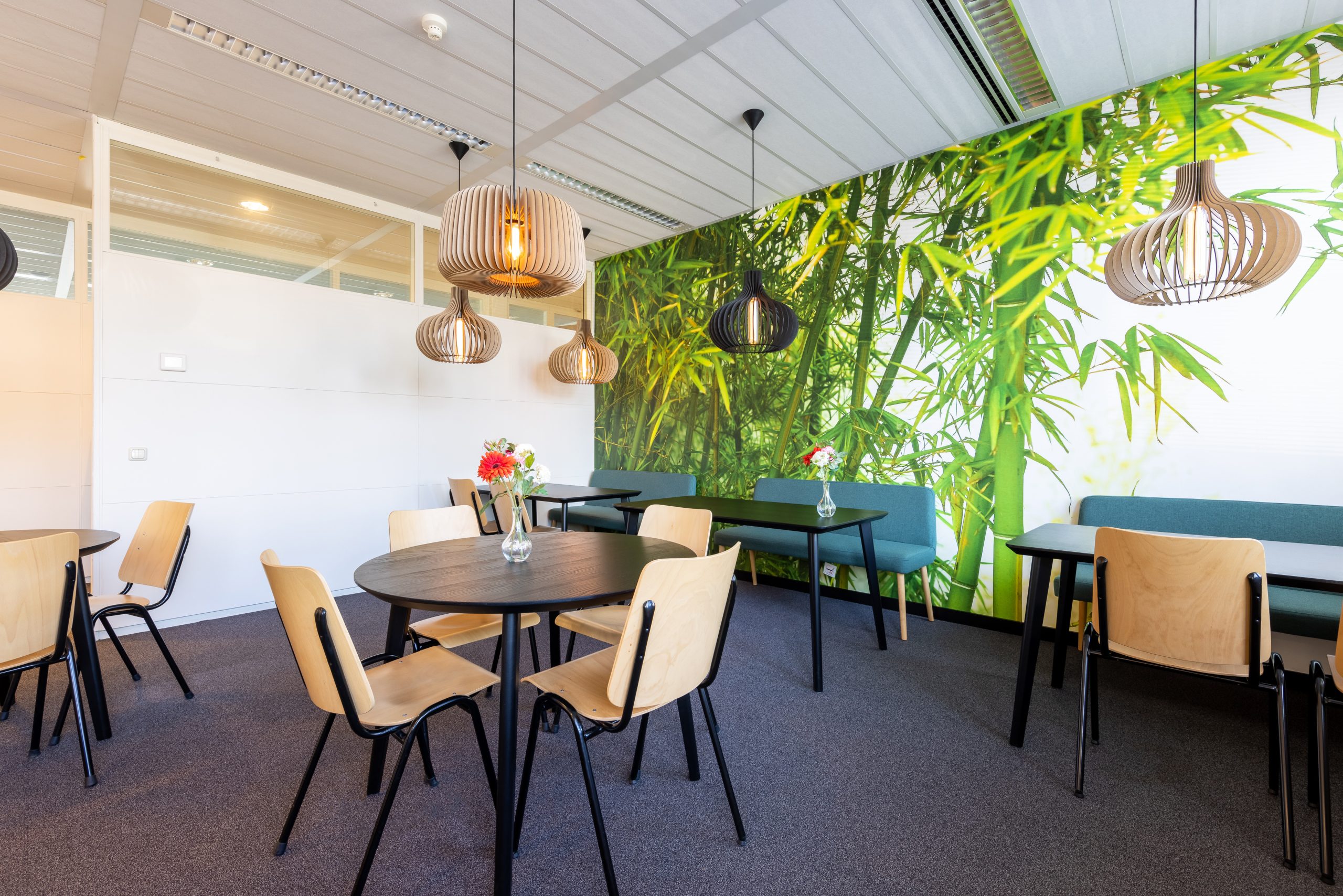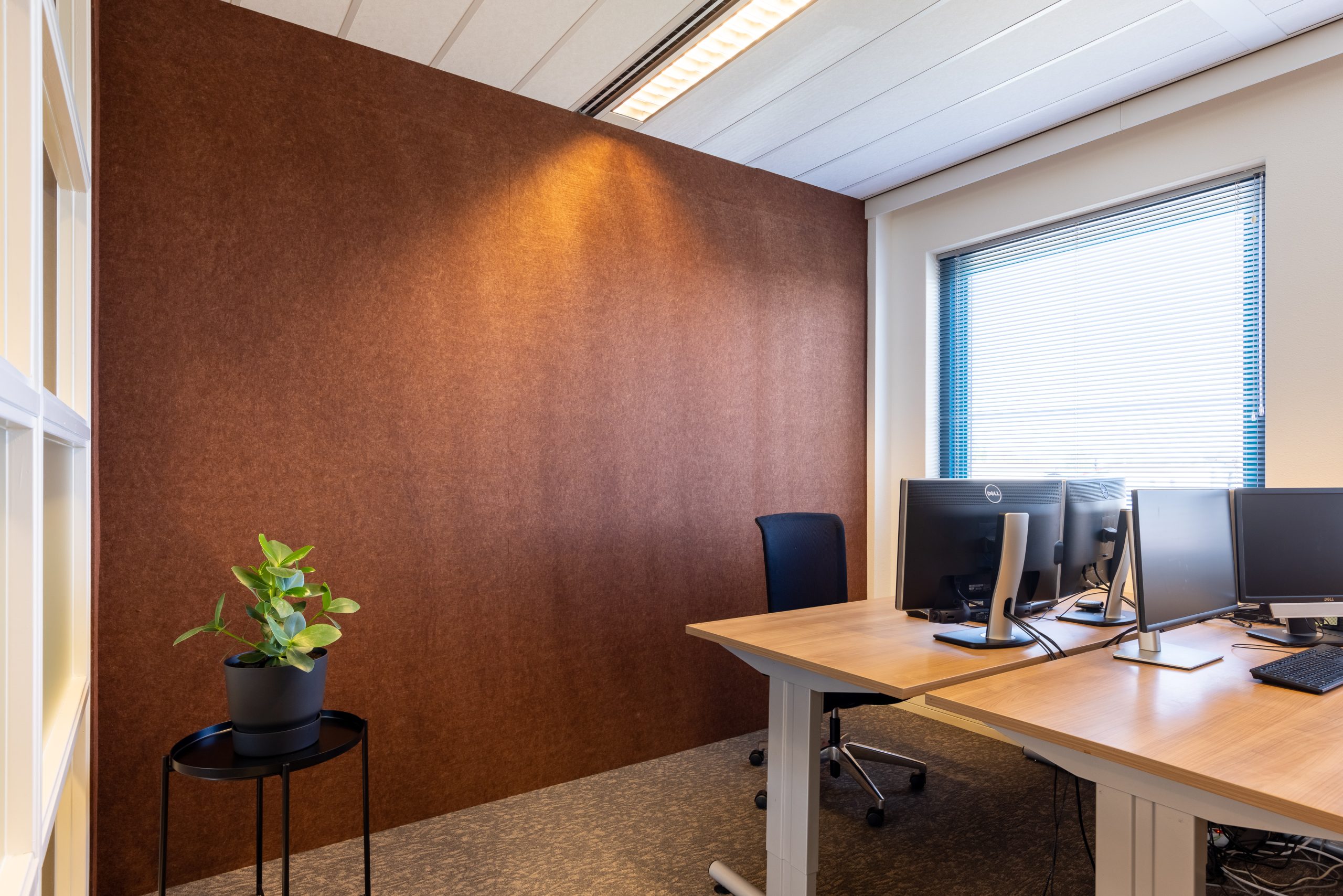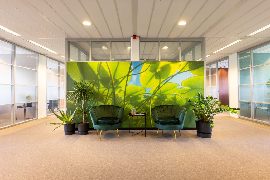Naast circulariteit was akoestiek een belangrijk aandachtpunt. Dit hebben we opgelost door middel van toepassing van PETFELT platen en akoestisch hoogwaardige tapijttegels in kantoren en openbare ruimtes.